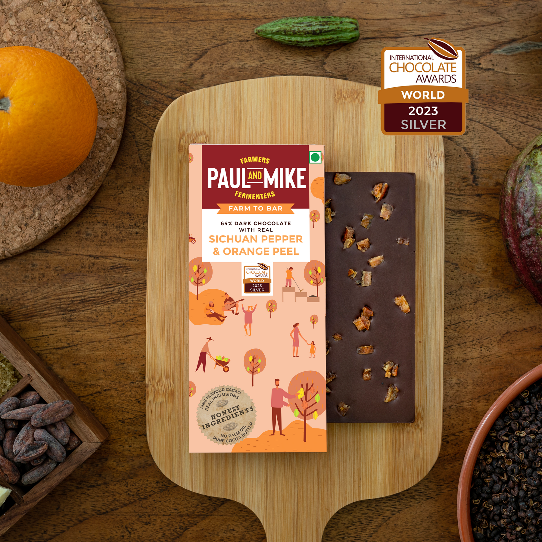 Tingly sichuan pepper and zesty orange peel come together with fine flavour cocoa in this unique bar.